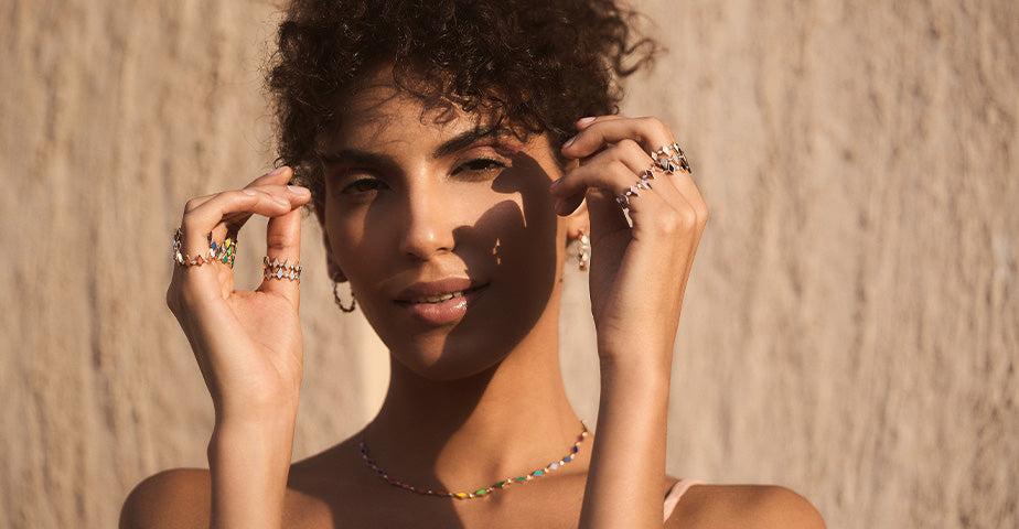 Using different sizes of customized gold balls and diamond pieces, the Shibuya Ring is designed for a fun look.